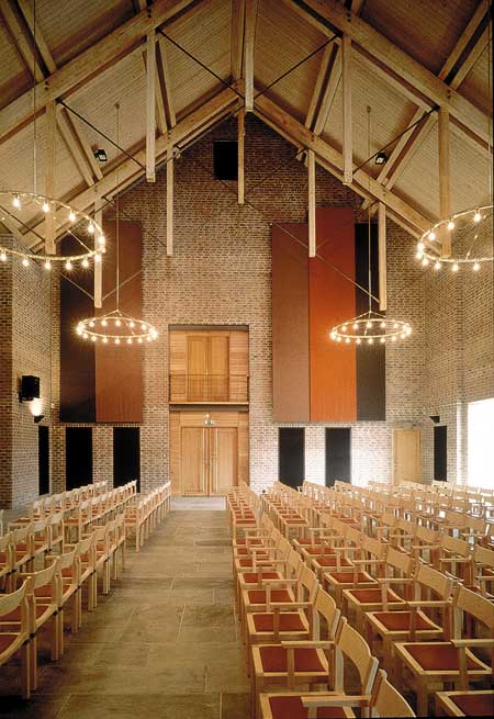 | Den moderne Øysteinsalen leies ut til forskjellige formål, og egner seg spesielt godt til seminar, foredrag og konserter. Salen tar rundt 250 tilhørere i kono-oppsett. |