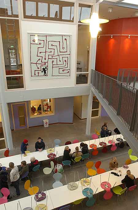 Det har vore viktig for oss at skulen skal ha ein inspirerande og oppløftande effekt på sine brukarar. Dette er vidareført i eit mangesidig anlegg, eit anlegg som har rom for eit stort spekter av anledningar og situsjonar, rom for høgtid, for spenning, for små grupper og store forsamlingar.