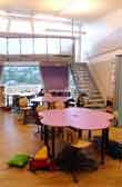 I hovedorganiseringen av undervisningsareal, er desse lagt som paviljongar, knytta saman med svalgangar. Avgreiningar av svalgangssystemet skjærer gjennom sentrale inneareal.