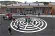 Ungdomstrinnet er plassert på sitt eige lille Akropolis, med mange, mindre oppholdssituasjoner, innslag av eksisterande vegetasjon etc. Dei to utesonene møtes i ein felles arena der to svære trappeanlegg fell mot einannan, med uteområde for vestibyle som bunn og «scene».